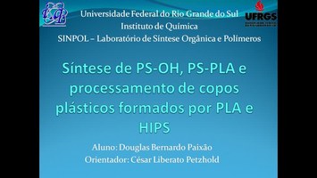 00217513. (12/09/2014). Síntese de PS-OH, PS-PLA e processamento de copos plásticos formados por PLA e HIPS. Recuperado 28/01/2026, de Finova 2014 Web site(s): http://videos.ufrgs.br/finova2014/sintese-de-ps-oh-ps-pla-e-processamento-de-copos-plasticos-formados-por-pla-e-hips.