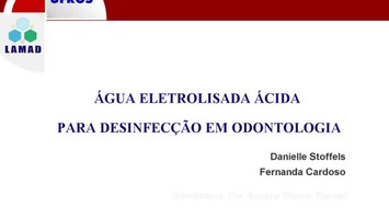 A desinfecção dos materiais utilizados em Odontologia é imprescindível para evitar a contaminação dos profissionais da saúde e pacientes. As resinas acrílicas ficam na boca dos pacientes por muito tempo e, por apresentarem microporosidade e degradação ao longo do tempo, acumulam microrganismos como bactérias e fungos. Mesmo com a limpeza mecânica realizada pelo paciente, ainda assim é necessária uma desinfecção mais efetiva por parte do profissional para evitar a colonização. Esses microrganismos quando proliferados podem ser responsáveis por doenças orais nesses pacientes como estomatite protética, causada pelo fungo candida albicans. Os materiais de impressão também devem ser desinfetados após serem retirados da boca do paciente. A desinfecção deve ser realizada sem alterar as propriedades dos materiais. Diferentes agentes podem ser empregados para a desinfecção em odontologia, entretanto ainda não há um agente que cumpra todos os requisitos para um agente desinfetante ideal: apresentar atividade antimicrobiana de amplo espectro; não ser tóxico nem irritante; sem odor desagradável; sem apresentar riscos ao meio ambiente; ser de fácil preparo e compatível com os materiais a serem desinfetados. Os agentes mais utilizados para esse tipo de desinfecção são soluções como glutaraldeído e hipoclorito de sódio. Atualmente, alternativas têm surgido para a desinfecção dos materiais, dentre eles, estão o ácido peracético, a água ozonatada, o gás ozônio, a energia de microondas e a água eletrolisada ácida (AEA). A água eletrolisada ácida é um agente de baixo pH e alto potencial REDOX e essas condições promovem a desinfecção. Por ter custo elevado devido a sua produção por equipamentos importados, torna-se inviável para o uso da maioria dos profissionais. Portanto, o objetivo foi desenvolver um protótipo de baixo custo para produção de água eletrolisada ácida eficaz na desinfecção de materiais de uso odontológico e posteriormente, avaliar a sua influência em resinas acrílicas e elastômeros. Com esse estudo foi possível produzir água eletrolisada ácida de baixo custo, eficaz para a desinfecção de resinas acrílicas e elastômeros contaminados com microrganismos orais e de fácil descarte.