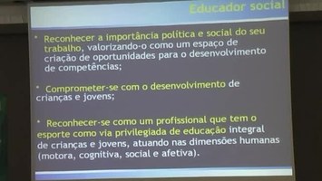 Vídeos exibindo atividades da capacitação, tais como: mesa de abertura, palestras e oficinas. As atividades contaram com a presença de Agrio Chacon, Amauri de Oliveira, Clarice Teixeira, João Liparoti, Fernando Marques, Ferrucio Feitosa, Fernando Marques, João Liparoti, Leandro Rechenchoski, Ruth Cidade, Lisiane Torres, Fabiano de Souza Fonseca, entre outros. As atividades contemplam apresentações de palestras e dinâmicas em grupo.