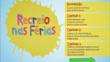 Introdução: O que é o Recreio nas Férias; Capítulo 1: Sustentabilidade e lazer no Recreio nas Férias (Silvano da Silva Coutinho); Capítulo 2: Celebrar os 10 anos do Programa Segundo Tempo com atitudes sustentáveis (Angela Brêtas); Capítulo 3: Celebrar a diversidade de gênero e educar para a sustentabilidade desafios para quem faz o Recreio nas Férias; Capítulo 4: Celebrar a diferença e promover a igualdade no Recreio nas Férias (Marcelo de Castro Haiachi); Capítulo 5: Planejar com e para a sustentabilidade no Recreio nas Férias (Silvano da Silva Coutinho); Capítulo 6: Vivências práticas para celebrar os 10 anos do PST pensando nas futuras gerações (Silvano da Silva Coutinho e Angela Brêtas); Capítulo 7: Hora da Revisão.