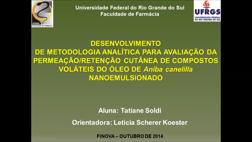 00181501. (19/09/2014). Desenvolvimento de metodologia analítica para avaliação da permeação/retenção cutânea de compostos voláteis do óleo de Aniba canelilla nanoemulsionado. . Recuperado 06/12/2025, de Finova 2014 Web site(s): https://videos.ufrgs.br/finova2014/desenvolvimento-de-metodologia-analitica-para-avaliacao-da-permeacao-retencao-cutanea-de-compostos-volateis-do-oleo-de-aniba-canelilla-nanoemulsionado.