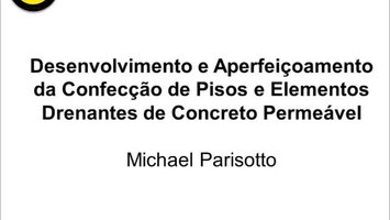 00220117. (16/09/2014). Desenvolvimento e Aperfeiçoamento da Confecção de Pisos e Elementos de Concreto Permeável. Recuperado 28/01/2026, de Finova 2014 Web site(s): https://videos.ufrgs.br/finova2014/desenvolvimento-e-aperfeicoamento-da-confeccao-de-pisos-e-elementos-de-concreto-permeavel.