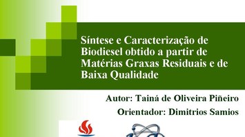 Síntese e Caracterização de Biodiesel Obtido a partir de Matérias Graxas Residuais e de Baixa Qualidade