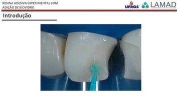 O objetivo do presente estudo foi avaliar a influência da adição de dois tipos de biovidro na radiopacidade, degradação em solvente e resistência à flexão de uma resina adesiva experimental. Foram produzidos dois biovidros pelo método sol-gel, sendo um deles com a incorporação de 2%, em peso, de pentóxido de nióbio. Foram formulados três resinas adesivas com BisGMA e HEMA: Gc- Controle, sem adição de biovidro; GBAG - com adição de biovidro; e, GBAGNb - com adição de biovidro com nióbio. Avaliou-se a radiopacidade (n=3), a degradação em solvente por dureza e imersão em etanol (n=3) e a resistência à flexão (n=5) das resinas adesivas. Os dados foram avaliados com ANOVA 1-via para a radiopacidade e o percentual de degradação, teste t pareado para os valores de dureza inicial e final , com um nível de significância de 5 e ANOVA 1-via e teste de Tukey para resistência à flexão, sendo o p=0,02. Quanto aos valores de radiopacidade, os grupos não apresentaram diferença estatisticamente significativa entre si. Quanto a dureza Knoop, o grupo controle apresentou maior dureza que o grupo BAG, porém não apresentou diferença estatisticamente significativa com o grupo BAGNb. O grupo BAGNb também não apresentou diferença estatisticamente significativa quanto ao grupo BAG. A adição de biovidro ao sistema adesivo experimental aumentou a degradação em solvente, comparado ao grupo controle. O mesmo não ocorre com a adição do biovidro contendo nióbio, que não altera a degradação, aliando assim as vantagens do biovidro sem alterar tal propriedade do produto. A adição de ambos os tipos de biovidro causou diminuição da resistência à flexão, comparados ao grupo controle, provavelmente por criar pontos de concentração de tensão. Porém os valores encontrados em todos os grupos testados estão condizentes com os valores encontrados em materiais comerciais, que são em torno de 80mPa. Podemos mostrar, então, por esse estudo que foi possível a produção de uma resina adesiva com a adição de biovidro. A adição de um biovidro com nióbio consegue conciliar os benefícios deste biomaterial sem causar prejuízos às propriedades da resina adesiva.