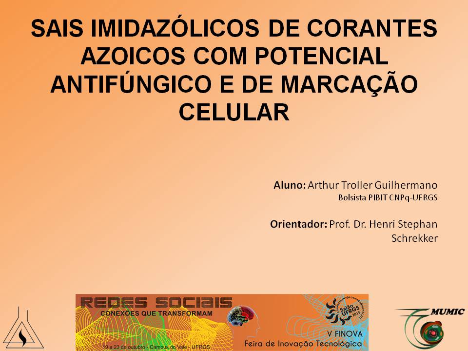 O projeto tem como objetivo produzir sais imidazólicos com ânions de corantes azoicos que tenham características tanto antifúngicas quanto de marcador celular, prospectando potenciais agentes de limpeza para ambientes com contaminação biológica. A ideia é, através do caráter anfifílico do cátion, garantir a interação do ânion com a célula, assim promovendo a detecção e remoção do biofilme.