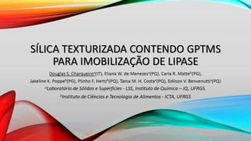 Enzimas são amplamente conhecidas como excelentes catalisadores por serem versáteis e apresentarem uma elevada seletividade catalítica. Reações catalisadas por enzimas podem ser realizadas em condições brandas de síntese quando comparadas com as reações conduzidas por catalisadores químicos. Elas demonstram também elevada seletividade, reagindo com determinados grupos funcionais do substrato, e especificidade, respeitando a estereoquímica do substrato e dos produtos. Contudo, o elevado custo das enzimas implica na necessidade de sua recuperação e reuso para viabilizar economicamente a sua aplicação industrial. Neste contexto, a técnica de imobilização de enzimas em matrizes inorgânicas, apresenta-se como uma solução promissora à este desafio. Além disso, a imobilização pode resolver problemas como estabilidade da enzima e a redução de sua atividade produzida por subprodutos ou pelo substrato. Uma matriz interessante para imobilização são as sílicas obtidas pelo método sol-gel de síntese, que envolve hidrólise e condensação de alcoxisilanos, em geral tetraetilortosilicato (TEOS). Esse método de síntese permite um controle das propriedades texturais dessas matrizes, como área superficial e distribuição de tamanho poros. Assim, o objetivo do trabalho foi sintetizar uma sílica mesoporosa com propriedades texturais adequadas, funcionalizá-la com 3-(glicidoxipropil)trimetoxisilano (GPTMS) e imobilizar lipase para aplicação na produção de biodiesel por rota etílica. A matriz de sílica foi sintetizada através do método sol-gel e funcionalizada com diferentes concentrações de GPTMS 0,5 e 1,0 mmol. Para a imobilização da enzima foram testadas três cargas diferentes 10, 50 e 500 mg. Os materiais foram caracterizados por análise termogravimétrica (TGA), análise elementar de carbono, hidrogênio e nitrogênio (CHN) e isotermas de adsorção e dessorção de nitrogênio. Óleo de soja foi utilizado para a produção de biodiesel. A matriz de sílica apresentou uma área superficial específica de 140 m2g-1 e os materiais funcionalizados com GPTMS com 0,5 e 1,0 mmol apresentam uma área superficial de 112 e 114 m2g-1 respectivamente. O volume de poros foi de 0,89 cm3g-1, 0,59 e 0,60 cm3g-1 para a matriz de sílica e para as amostras com 0,5 e 1,0 mmol de GPTMS, respectivamente. A matriz de sílica apresentou um máximo na curva de distribuição de poros próximo de 23 nm. Após a funcionalização com GPTMS e imobilização da enzima, esse e máximo se desloca para 20 nm. Os materiais se mostraram eficientes como catalisadores na síntese do biodiesel sendo que o melhor resultado foi obtido para a amostra contendo 50 mg de enzima imobilizada, com rendimentos de 45 e 50 %.
