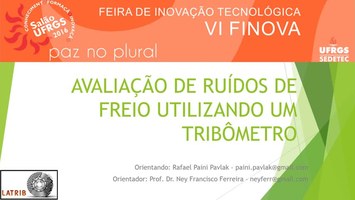 00242158. (12/06/2017). Avaliação de ruídos de freio utilizando um tribômetro. Recuperado 24/02/2026, de Finova 2016 Web site(s): https://videos.ufrgs.br/finova2016/avaliacao-de-ruidos-de-freio-utilizando-um-tribometro.