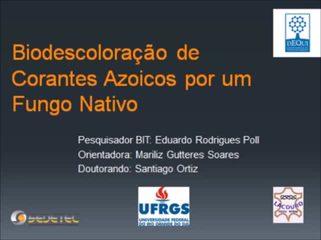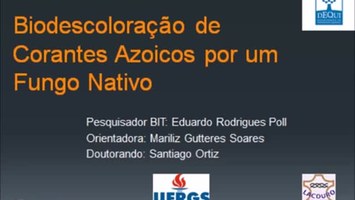 00242158. (13/06/2017). Biodescoloração de Corantes Azóicos por um Fungo Nativo. Recuperado 08/12/2025, de Finova 2016 Web site(s): https://videos.ufrgs.br/finova2016/biodescoloracao-de-corantes-azoicos-por-um-fungo-nativo.