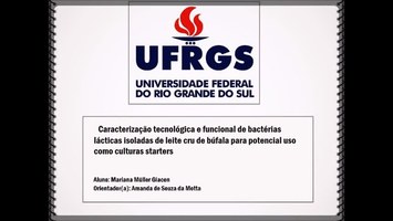 00242158. (08/06/2017). Caracterização tecnológica e funcional de bactérias lácticas isoladas de leite cru de búfala para potencial uso como culturas starters. Recuperado 13/03/2026, de Finova 2016 Web site(s): https://videos.ufrgs.br/finova2016/caracterizacao-tecnologica-e-funcional-de-bacterias-lacticas-isoladas-de-leite-cru-de-bufala-para-potencial-uso-como-culturas-starters.