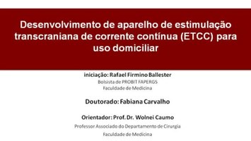 00242158. (14/06/2017). Desenvolvimento de aparato de estimulação transcraniana de corrente contínua (ETCC) para uso domiciliar. Recuperado 08/12/2025, de Finova 2016 Web site(s): https://videos.ufrgs.br/finova2016/desenvolvimento-de-aparato-de-estimulacao-transcraniana-de-corrente-continua-etcc-para-uso-domiciliar.