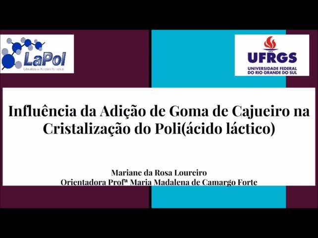 00242158. (02/06/2017). Influência da Adição de Goma de Cajueiro na Cristalização do Poli(ácido láctico). Recuperado 08/12/2025, de Finova 2016 Web site(s): https://videos.ufrgs.br/finova2016/influencia-da-adicao-de-goma-de-cajueiro-na-cristalizacao-do-poli-acido-lactico.