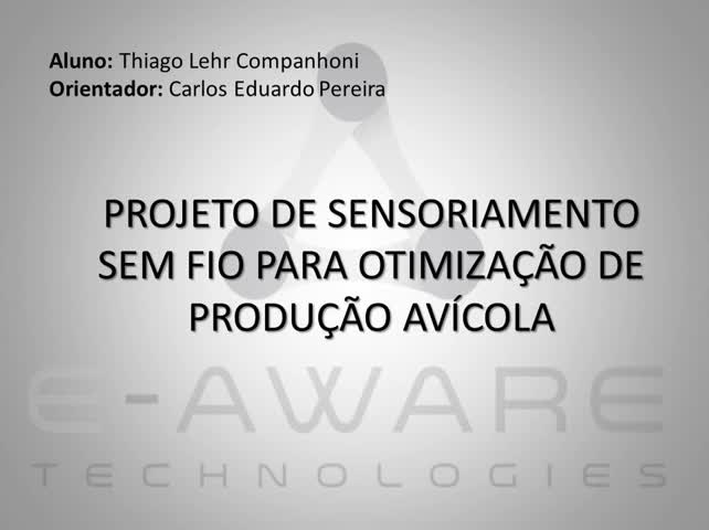 00242158. (01/06/2017). Projeto de sensoriamento sem fio para otimização de produção avícola. Recuperado 08/12/2025, de Finova 2016 Web site(s): https://videos.ufrgs.br/finova2016/projeto-de-sensoriamento-sem-fio-para-otimizacao-de-producao-avicola.
