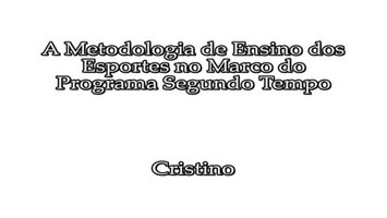Vídeos exibindo atividades de capacitação das equipes de coordenadores de núcleos do Programa Segundo Tempo. A atividade foi desenvolvida através de palestra expositiva com o tema: A Metodologia de Ensino dos Esportes no Marco do Programa Segundo Tempo, ministrada pelo professor Cristiano Jose dos Santos Ferreira.