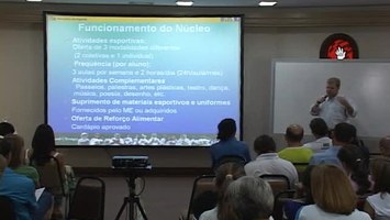 Vídeos exibindo atividades de capacitação das equipes de coordenadores de núcleos do Programa Segundo Tempo. A atividade foi desenvolvida através de palestra expositiva com o tema: Política Nacional e setorial de esporte e ações estratégicas, ministrada por: Fábio Hansen, Amauri Bassoli de Oliveira, Ricardo Petersen, Thais Higuchi, Debora Berto, Renato Rochefor, Vanildo Pereira, Alessandra Carnelozzi Prati, Fabiano de Souza Fonseca, Rodrigo Cavasini, Adroaldo Gaya, Cristino Ferreira, Marcelo Cardoso, dentre outros.