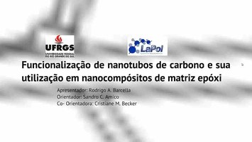 Os nanotubos de carbono (NTC) desde sua descoberta vêm sendo alvo dos mais variados grupos de pesquisa. A utilização dos NTC como nanorreforços em materiais compósitos tem o potencial de proporcionar um aumento das propriedades mecânicas, térmicas e elétricas. Por outro lado, a incorporação deste material em polímeros é uma tarefa desafiadora, uma vez que a interação entre nanotubos de carbono e resinas poliméricas é bastante complexa. Um dos métodos utilizados é a funcionalização através de ataque de ácidos inorgânicos. Este trabalho tem como foco avaliar a funcionalização de nanotubos de carbono e as propriedades finais dos nanocompósitos utilizando os NTC funcionalizados. Para a funcionalização foram utilizados nanotubos de paredes múltiplas Chegdu Organic Chemicals Co. Ltd, ácido sulfúrico, ácido nítrico, ácido clorídrico e hidróxido de amônio para neutralizar os NTC funcionalizados. Os NTC funcionalizados foram caracterizados por FT-IR e espectroscopia Raman. Para a confecção dos nanocompósitos foi utilizado resina epóxi a base de diglicidil éter do bisfenol A (Araldite LY 1316 – Huntsman) e trietilenotetramina como endurecedor (Aradur HY 951 – Huntsman). Os nanocompósitos (0,25 e 0,50% de NTC) foram produzidos pelo método de casting em moldes de silicone, curados à temperatura ambiente e pós-curados a 70 ºC por 2 h. Foram realizadas técnicas para a caracterização de compósitos, tais como, análise termogravimétrica (TGA), análise dinâmico-mecânica (DMA), impacto e microscopia eletrônica de varredura (MEV). Os resultados obtidos foram satisfatórios, ou seja, comparando com as propriedades da resina pura, os compósitos com os NTC funcionalizados obtiveram um aumento nas propriedades dinâmico-mecânicas, além disso, pode-se inferir que a funcionalização de NTC facilita a dispersão dos nanotubos de carbono na resina polimérica simplificando a cadeia produtiva dos nanocompósitos contendo os NTC. O trabalho acima descrito foi realizado no Laboratório de polímeros (LAPOL), no qual participei ativamente em todas as etapas do trabalho.