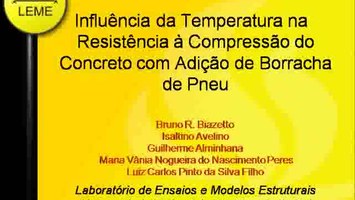 A grande quantidade de resíduos de pneus gerados anualmente tem resultado em um sério problema ambiental, principalmente devido à falta de gerenciamento no que se refere à coleta e destinação final. No Brasil, somente no ano de 2010, a produção de pneus é estimada em 67 milhões de unidades, tendo ainda cerca de 18 milhões de unidades importadas, contabilizando um total de 85 milhões de unidades de pneus colocados em serviço. O Brasil recicla cerca de 74% dessa demanda. Apesar de alto, esse índice ainda não é satisfatório, no que diz respeito ao impacto ambiental que os 26% excedentes podem causar. Considerando estes dados e a crescente busca por métodos de reutilizar os pneus inservíveis (pneus que não podem mais ser recapados), foi iniciada no LEME uma linha de pesquisa que visa estudar formas de reaproveitamento das partículas de borracha e fibras obtidas pela trituração de pneus inservíveis. Os primeiros resultados obtidos por Albuquerque (2008) e Graeff (2011) foram muito positivos e o presente estudo buscou caracterizar de forma mais intensa a utilização da borracha moída de pneus como adição em matrizes cimentícias. Buscando agregar novo conhecimento, o trabalho se focou no estudo do comportamento do concreto com adição de borracha quando submetido a temperaturas elevadas. Para caracterizar o uso da adição de borracha de pneu foram moldados corpos de prova cilíndricos e painéis, com 3 porcentagens de adição (1, 2 e 3%), usando 2 matrizes, uma de alta resistência e outra de resistência normal. Cada combinação de traço e porcentagem de adição foi submetida a vários patamares de temperatura (23, 60, 80, 350, 650 e 800°C), sendo monitorada a evolução da temperatura e das deformações no interior das amostras. Após a exposição corpos de prova cilíndricos extraídos e moldados foram submetidos a ensaios de compressão para determinação da resistência residual. Desta forma foi possível avaliar os eventuais benefícios e problemas associados à incorporação dessa adição em situações de aquecimento equivalentes ao uso em barragens e durante incêndios.