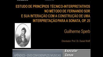 O presente trabalho aborda a interação entre a utilização do Méthode pour la Guitare (1830) de Fernando Sor com o processo de construção de interpretação da Sonata op. 25, do mesmo autor. O trabalho foi norteado pela hipótese de associação entre as concepções técnicas e composicionais de Sor, articuladas em seu Método, e sua correspondente tradução em sua escrita violonística. Através desse cotejo, traçaram-se claras possibilidades de associação, e concluiu-se positivamente na utilização do Método como ferramenta complementar na interpretação da música de Fernando Sor.