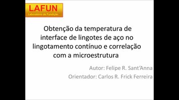 O sistema de lingotamento contínuo de aço tem por característica a produção contínua de semi-acabados, blocos, tarugos e placas, a partir do aço líquido vazado através de um molde de cobre refrigerado com água. O principal fenômeno envolvido no processo de lingotamento contínuo é a transferência de calor que ocorre durante o resfriamento primário (molde), secundário (zona de sprays) e terciário (radiação livre). A capacidade de controlar o comportamento destes modos de resfriamento é de grande importância, visto que eles governam a solidificação do metal. Entre os fatores que influenciam na transferência de calor, pode-se citar, entre outros: velocidade de lingotamento, temperatura de vazamento, composição química e tipo de molde. A taxa de extração de calor entre o metal e o molde está diretamente ligada à formação das estruturas de solidificação do aço, sendo a mesma de vital importância para determinação da qualidade do produto final. O objetivo deste trabalho é obter as temperaturas da interface metal/ambiente a partir de medições com pirômetro óptico e correlacioná-las com as micro-estruturas formadas próximo da superfície do tarugo. Foram realizadas medidas da temperatura ao longo da superfície do tarugo em três diferentes corridas. Os tarugos estudados têm uma seção transversal quadrada, com 155 mm de lado. Foram retiradas amostras destes tarugos com cerca de 100 mm de comprimento. Destas amostras, foram retirados cubos de cerca de 10 mm de lado, no centro da face do tarugo, para realização de análise micrográfica. As três amostras, amostra 1, amostra 2 e amostra 3, diferem quanto a sua composição química. A preparação das amostras para micrografia seguiu o procedimento padrão segundo a norma ASTM E3-01. Foi utilizada a sequência de lixas de granulometria 220, 320, 400, 600 e 1200, com posterior polimento com alumina de granulometria 1µm e ataque químico, por imersão, com Nital 5%, com duração de 3 a 4 s. As micrografias foram obtidas através de microscópio óptico e a aquisição, calibração e quantificação do percentual de fases, em cada amostra, foram realizadas com software comercial. Os resultados obtidos a partir de análise térmica das temperaturas medidas com pirômetro óptico e dados de controle do processo mostram que a amostra 2 foi a que teve a maior taxa de extração de calor. Já a amostra 1 foi a que apresentou menor taxa de extração de calor na zona de resfriamento primária. A comparação entre as micrografias de cada amostra evidencia que diferem pelo refino de suas estruturas. Isto está de acordo com a literatura sobre o assunto, que diz que maiores taxas de extração de calor geram estruturas mais refinadas. A análise dos resultados obtidos mostra como a taxa de extração de calor influencia diretamente nas estruturas formadas no produto final. São estas estruturas que dão as características mecânicas de cada tipo de aço, sendo assim de vital importância o conhecimento e controle sobre o processo para sua otimização. O controle sobre todos os fatores que influenciam na solidificação dos aços é o objetivo principal para atingir o processo de lingotamento contínuo ideal, onde se consegue as maiores velocidades de lingotamento, obtendo-se um produto com suas características específicas, sem falhas, a fim de aumentar a produtividade.