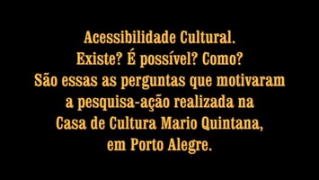 Este estudo discute a acessibilidade cultural e cidadã a partir de uma pesquisa-ação desenvolvida na Casa de Cultura Mario Quintana (CCMQ), em Porto Alegre. A pesquisa aborda as percepções de um grupo de pessoas com deficiências, físicas, visuais e auditivas interagindo com os diferentes ambientes desse espaço cultural de Porto Alegre, na tentativa de traçar percursos culturais possíveis ou não. Esse processo cultural investigativo é apresentado na forma de um documentário, através de uma metodologia de pesquisa-ação, além de trazer uma discussão sobre a existência de uma Cultura do Acesso. Isso significa dizer que, na medida em que as diferenças são vistas e inseridas no nosso cotidiano sociocultural, a acessibilidade perpassa uma questão de reivindicação ou uma prerrogativa de políticas públicas e se estabelece por meio de sensibilizações e percepções, através de demonstrações atitudinais de cidadãos que constroem o que se denomina de Cultura do Acesso.