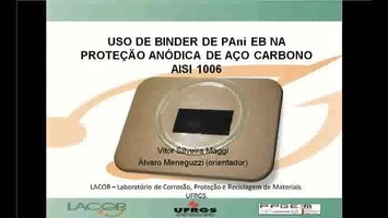 Um dos mecanismos mais eficazes para o combate à corrosão é o método de proteção anódica, que busca a formação de um filme de óxidos protetores, a chamada passivação do material metálico, que resulta na desaceleração do processo corrosivo. O princípio básico desta técnica é a aplicação de uma corrente anódica externa para formação de uma camada superficial de óxidos protetores. A camada passa a atuar como uma barreira no isolamento da superfície do metal em relação ao eletrólito, introduzindo um efeito de barreira. Este trabalho tem como objetivo principal alcançar a proteção anódica pela aplicação de potencial externo, através da aplicação de um filme de binder, por via química, composto basicamente por um polímero intrinsecamente condutor (PIC) e um plastificante com características inertes. O binder, após o processo de secagem, formará um filme que atuará como um agente oxi-redutor que induzirá a passivação e consequentemente proteção do metal em ambientes agressivos. A produção do binder de PIC pode ocorrer pela união de um plastificante específico, como 4-cloro-3-metilfenol (CMF), um solvente orgânico e o emprego de um PIC, como a polianilina (PAni), no estado oxidado e desdopado, chamado de Esmeraldina Base (EB). Esta associação, após processo de secagem, visa à obtenção de filmes auto-suportados com a finalidade de proteger substratos metálicos expostos a ambientes corrosivos. O PIC PAni EB, tem se apresentado como alternativa inovadora para a composição de revestimentos protetores inteligentes contra a corrosão. Os filmes produzidos possuem propriedades que impedem a condução iônica ou eletrônica direta entre o substrato metálico e eletrólito, através de reações de oxi-redução do sistema eletrólito/filme/metal. A PAni EB também demonstra vantagens devido às suas características específicas, como o baixo custo do monômero (anilina), certa solubilidade em solventes orgânicos, a facilidade de síntese, a excelente estabilidade em determinadas condições ambientais tanto na forma não condutora quanto condutora, a região de potenciais em que ocorrem as reações de oxidação-redução, que são compatíveis com a formação e/ou preservação de óxidos passivantes para vários metais, principalmente os ferrosos e, ultimamente com a possibilidade de obterem-se filmes coesos e auto-suportado. O solvente orgânico utilizado neste trabalho é o dicloroetano (C2H4Cl2) que tem como objetivo regular a homogeneização do PIC e do CMF, além de controlar o tempo de secagem do binder para a formação uniforme do revestimento. Este solvente também se caracteriza por uma menor toxicidade ambiental que outros solventes similares, como o clorofórmio (CHCl3). O plastificante utilizado na formulação do binder de PAni EB, o CMF tem o objetivo de facilitar a movimentação das cadeias poliméricas, de forma que as partículas de PAni EB tenham coesão e contato físico entre si, à superfície do substrato metálico e o eletrólito, e com isso formar um filme autosuportado. Com isso, o binder de PAni EB foi produzido através da mistura da PAni EB, dicloroetano e o plastificante 4-cloro-3-metilfenol (CMF). O binder obtido foi aplicado em placas de aço carbono AISI 1006, com o uso do equipamento Spin Coater. Após as placas revestidas foram secas em temperatura ambiente pelo período de 24 h, obtendo-se assim amostras metálicas revestidas com filme de PAni EB A partir disto, foram realizados ensaios eletroquímicos, com o objetivo de verificar a capacidade de atuação do revestimento produzido, com o auxílio do potenciostato/galvanostato AUTOLAB PGSTAT302 Ecochemie. Utilizou-se as técnicas de Voltametria Cíclica (VC), Potencial em Circuito Aberto (OCP), em uma solução aquosa de 2 molL-1 de H2SO4, onde o eletrodo de trabalho apresentava-se com e sem revestimento. Os resultados obtidos demonstraram que o filme de PAni EB tem capacidade de proteger o metal contra a corrosão, por um período determinado, através de mecanismo de proteção anódica, com a formação de par redox filme/metal, dentro da região de passivação do metal.